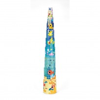 Pirámide redonda con diseño de animalitos del estanque de Janod compuesta por 10 elementos para que el niño las apile.