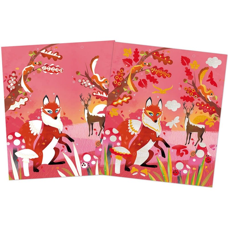 Cuatro fantásticos cuadros ambientados en las cuatro estaciones del año de Janod que se podrán pintar con esta preciosa pintura nacarada y utilizando una plantilla para facilitar la actividad y para asegurarse de que el resultado sea perfecto.