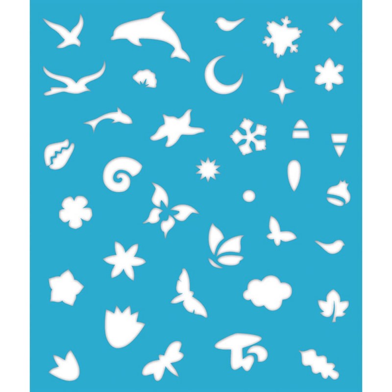 Además contiene 1 plantilla de cartón y 5 tonos distintos de pintura nacarada.