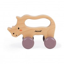 Juguete de arrastre en forma de rinoceronte de Janod para los más pequeños, podrá llevárselo y divertirse en cualquier parte.