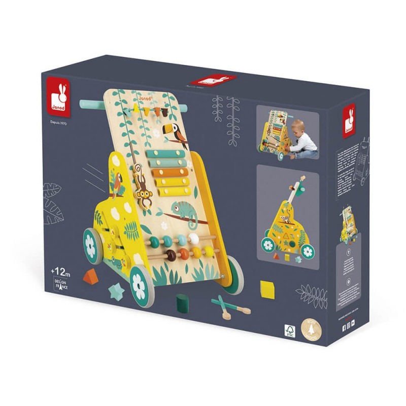 Este Carrito Multiactividades Tropik de Janod mantendrá a nuestros pequeños entretenidos durante horas puesto que contiene una infinidad de actividades.