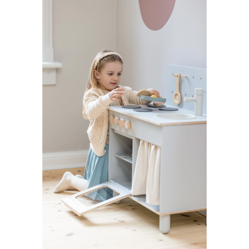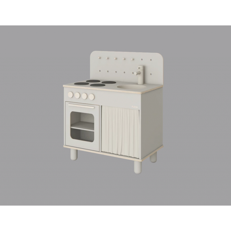 Cocinita de madera de Flexa perfecta para que nuestros pequeños inventen, creen e imaginen gracias al juego simbóloco.