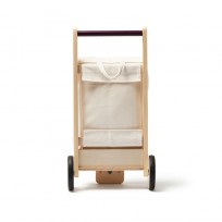 Eles poderão fazer compras em casa ou ir ao supermercado com a mamãe e o papai, pois as rodas de madeira contêm uma borracha que lhes permitirá arrastar o carrinho com eles.