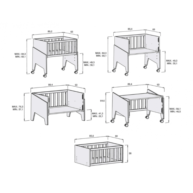 Podemos convertir la minicuna en 5 piezas distintas para que crezca con nuestros peques y podamos sacarle más partido.