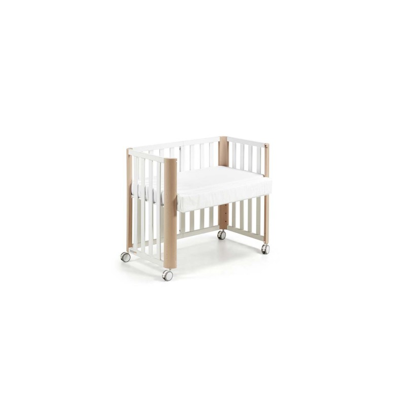 Este modelo está especialmente diseñado para facilitar el colecho seguro, permitiendo unir la minicuna a la cama de los padres mediante un sistema de sujeción con correas ajustables. El lateral extraíble sin herramientas permite transformar la cuna rápidamente, favoreciendo el contacto cercano con el bebé durante la noche y facilitando la lactancia nocturna.