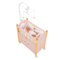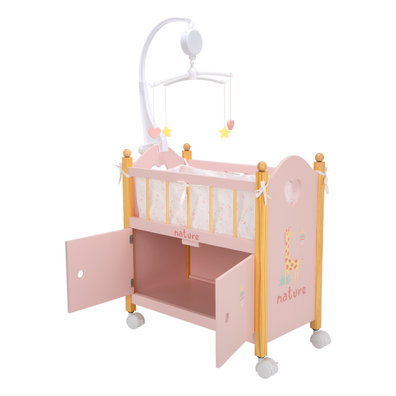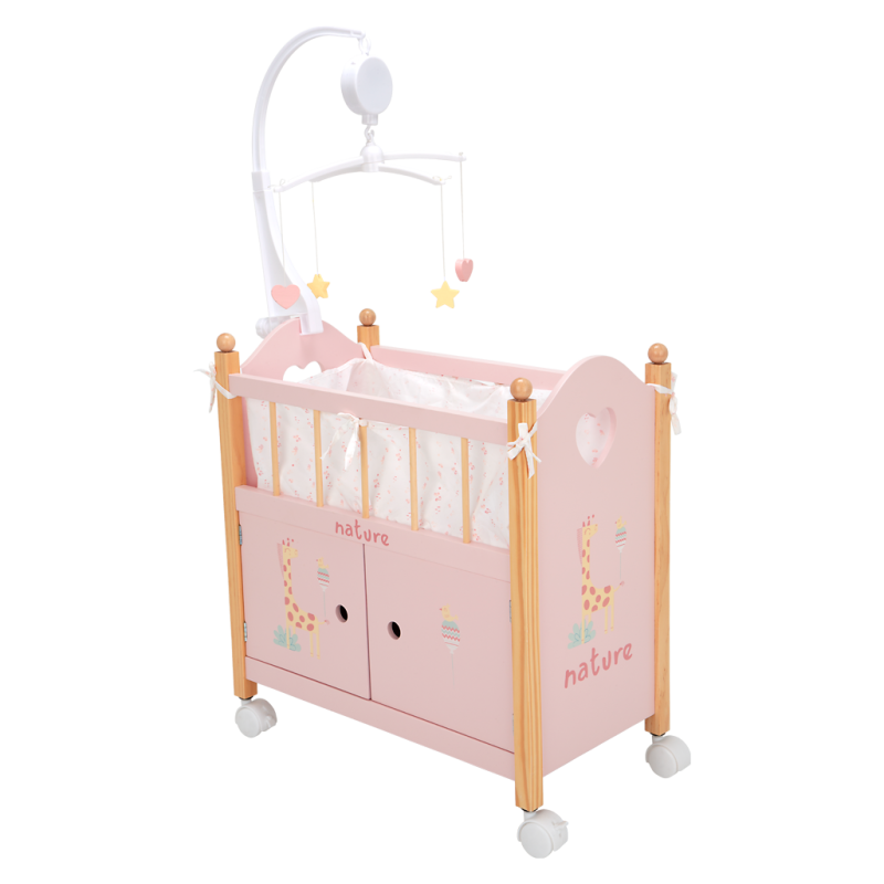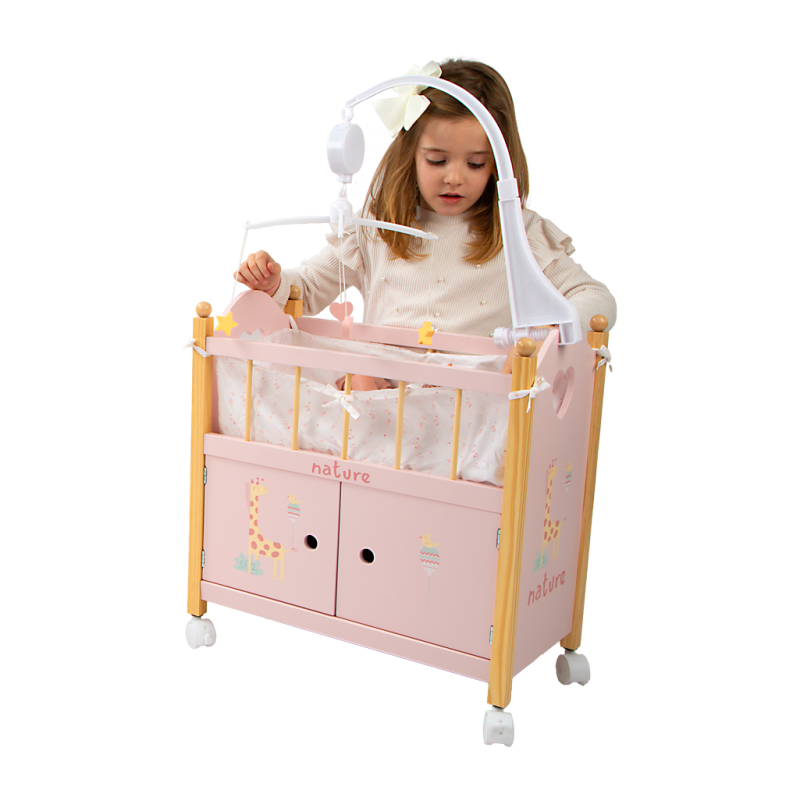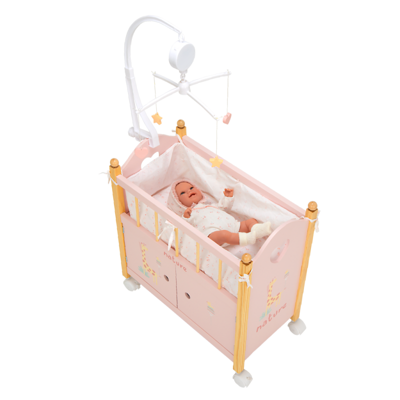 Incluye como accesorios un carrusel, una almohada y una colcha a juego.