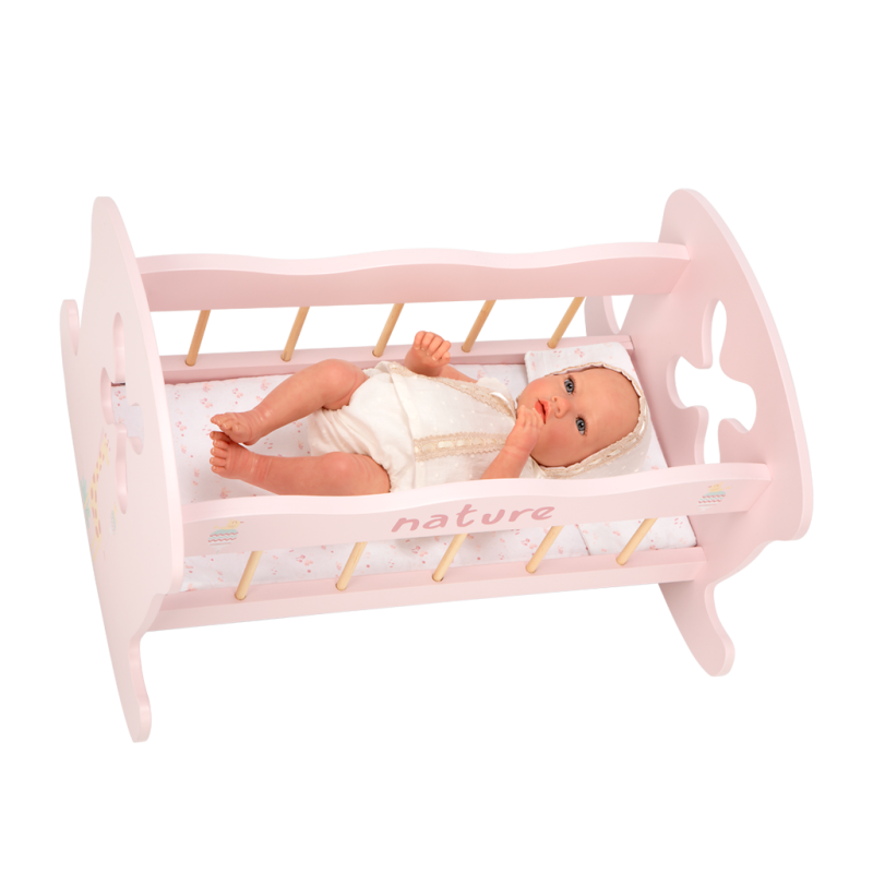 Una preciosa y elegante cuna con balancín de madera de la colección FIRENZE y NATURE de Arias en la que los peques de la casa podrán jugar durante horas con sus muñecas y amigos.