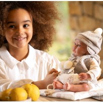 Vega es un bebé que simula la realidad a la perfección gracias a su elaboración artesanal, sus acabados , la calidad y el cuidado al máximo de cada detalle con el que se realizan y además tiene un olor característico a vainilla que hará que los más peques quieran sostenerla en brazos en todo momento
