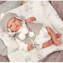 Con sus 40 centímetros la pequeña bebé reborn Vega es un bebé muy realista con el cuerpo blandito y las extremidades en vinyl. Gracias a éste podemos apreciar los detalles propios de los recién nacidos como son las rojeces, la babita, arruguitas y venitas.