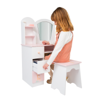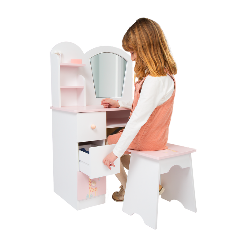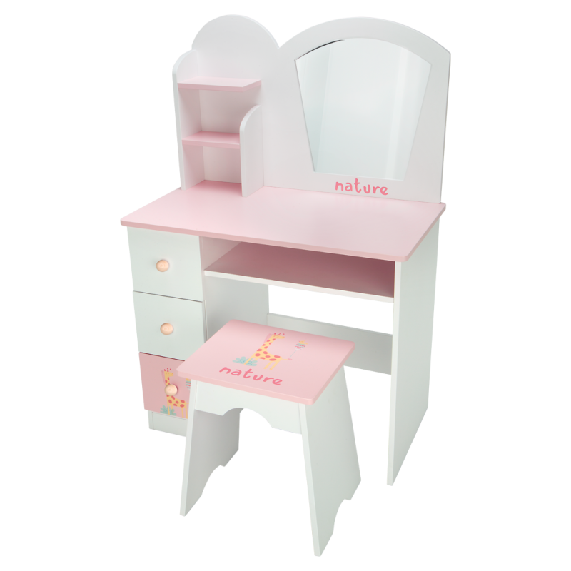Los peques pasarán horas jugando con este bonito tocador en tono rosa.