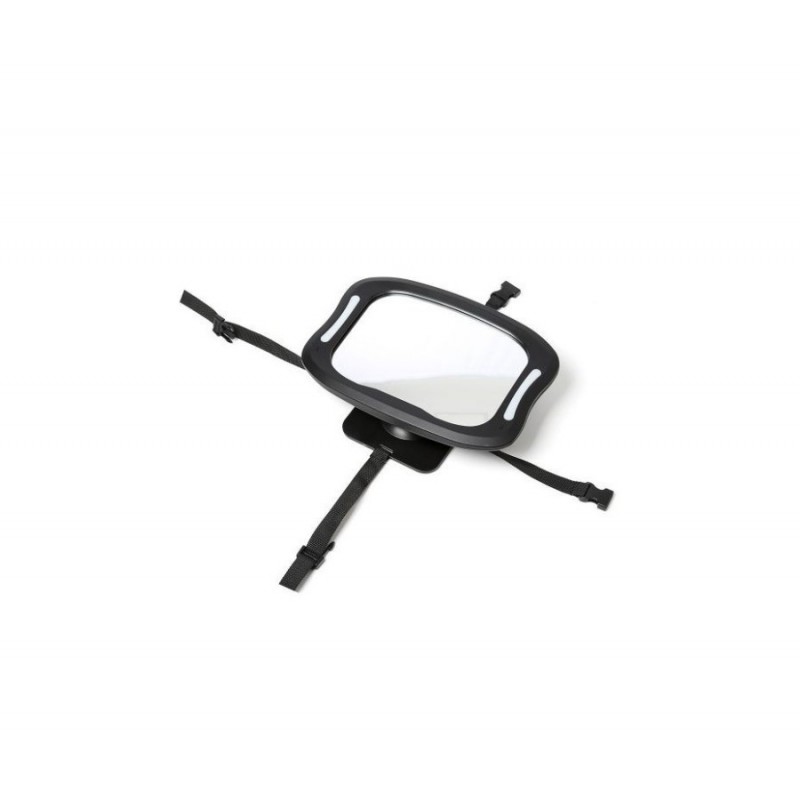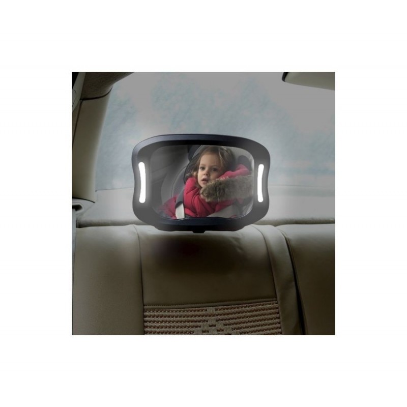 Espejo retrovisor universal con luz diseñado por Baby Monsters para poder ver al peque durante vuestros viajes en coche. Se coloca fácilmente en el reposacabezas de uno de los asientos