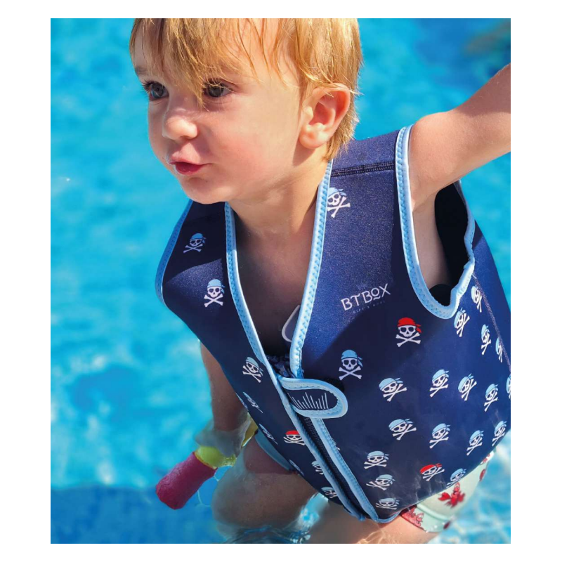 Bonito chaleco flotador de aprendizaje Piratas de Btbox es perfecto para acompañar a nuestros pequeños en verano.