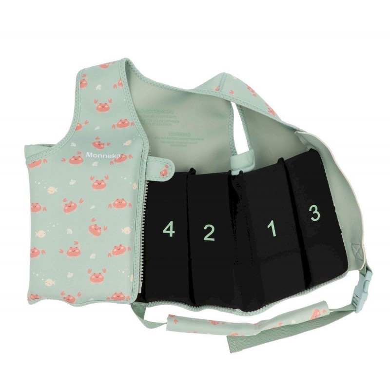 Este chaleco es un chaleco de aprendizaje ua que contiene 8 compartimientos en los cuales cada uno contiene 3 elementos de flotabilidad, en total 24 elementos de flotabilidad que podrás ir quitando a medida que nuestros pequeños mejores su autonomía en el agua.