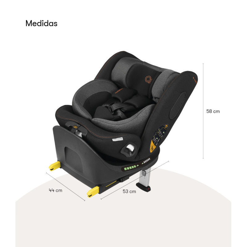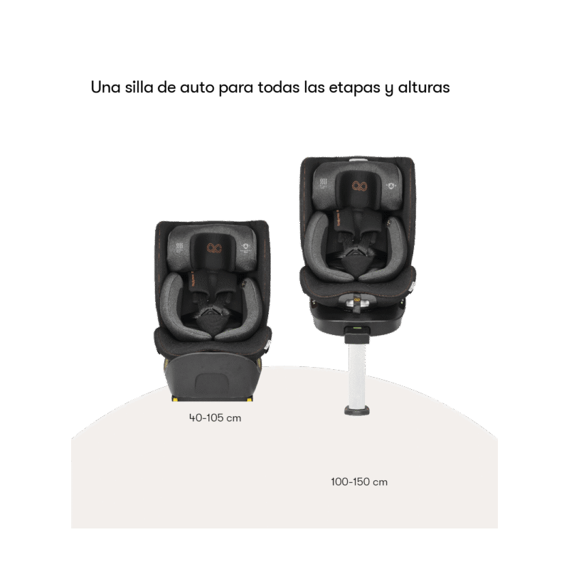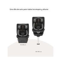 Homologada según la normativa i-Size / R129, permite instalarse en sentido de la marcha o a contramarcha, ofreciendo máxima protección, reposacabezas ajustables y arneses acolchados.