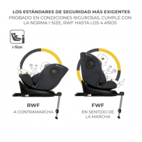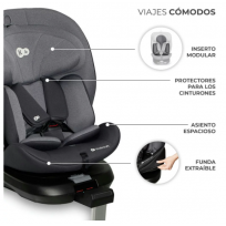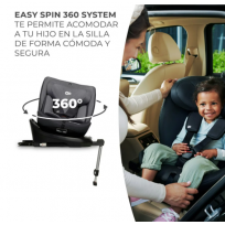 - Sistema Easy spin 360º que ofrece comodidad para abrochar a nuestros pequeños y cambiar de forma rápida la posición de la silla sin desmontarla.
