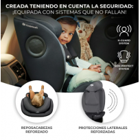 I-360 I-Size contiene un sistema de seguridad implacable ya que contiene dos sistemas de seguridad que aumentan la protección de nuestros pequeños.