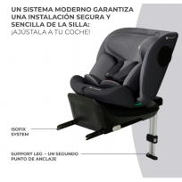 Instalación facil y segura gracias al sistama Isofix y una pata de apoyo que aumenta la estabilidad de la silla al transportar a niños que midan menos de 100 cm.