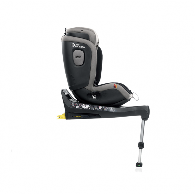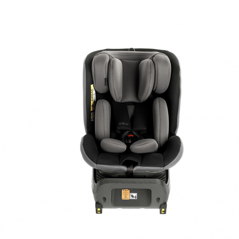 Se puede instalar en ambos sentidos de marcha, contiene Isofix, protección lateral, pata de apoyo, rotación de 360° con posición de carga para baby sit y reductor recién nacido regulable al