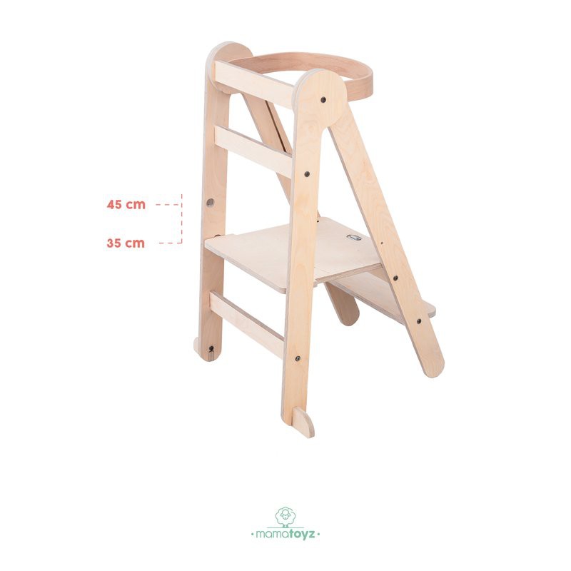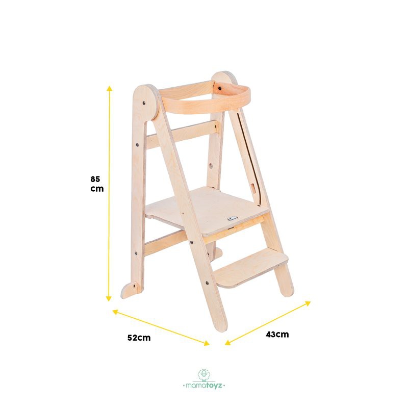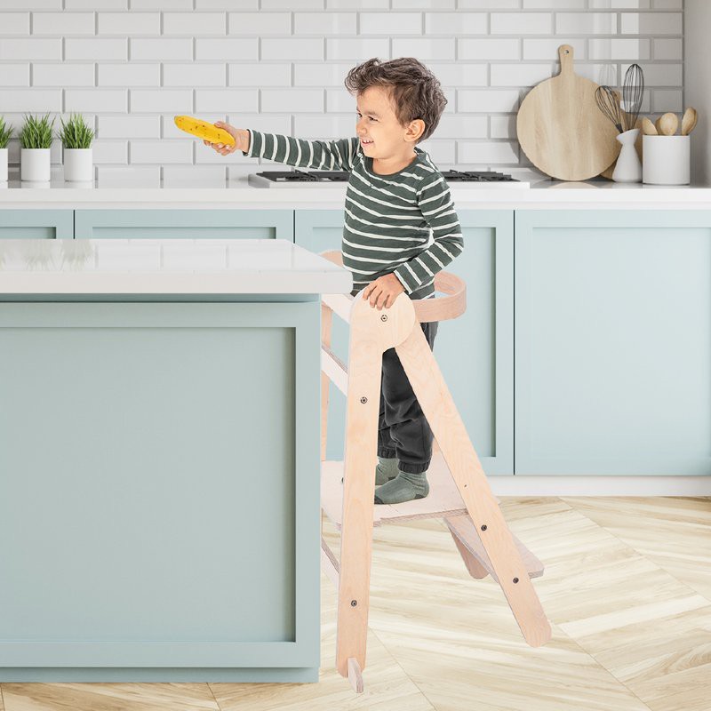 Fomenta la independencia de tu hijo con la Torre de Aprendizaje Fold. Diseñada para proporcionar seguridad y confianza, esta torre permite a los pequeños alcanzar superficies elevadas fácilmente, ya sea en la cocina, el baño o cualquier rincón del hogar.