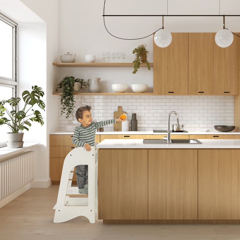 La Torre de Aprendizaje Kule es la herramienta perfecta para que los niños de 12 meses a 5 años participen de forma segura en las actividades diarias del hogar.