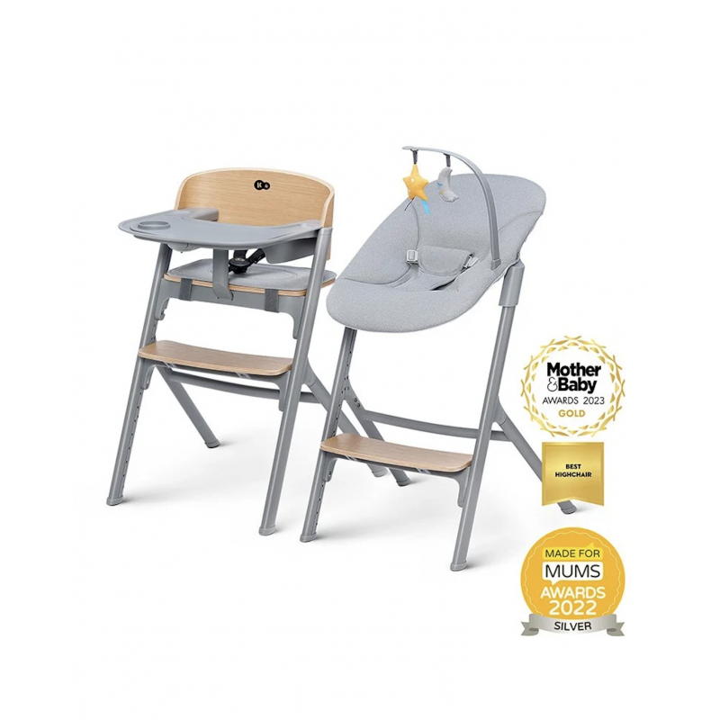 - El conjunto incluye accesorios que permiten crear una hamaca alta o diferentes variantes de sillas. LIVY viene con: silla mecedora, mantel antideslizante para la bandeja, barra protectora con cinturones y un cojín blando.