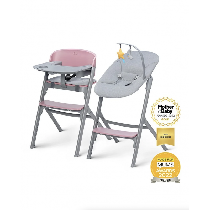 - El conjunto incluye accesorios que permiten crear una hamaca alta o diferentes variantes de sillas. LIVY viene con: silla mecedora, mantel antideslizante para la bandeja, barra protectora con cinturones y un cojín blando.