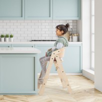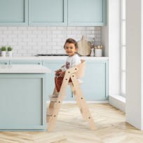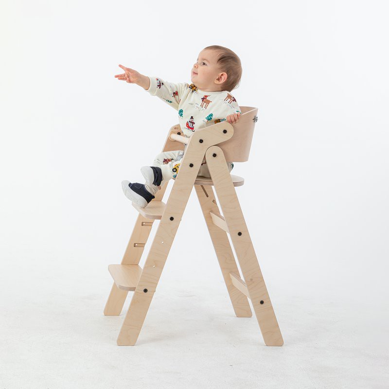 MyChair silla plegable de madera evolutiva crece con tu hijo desde los 12 meses hasta los 15 años. Diseñada para acompañar cada etapa del crecimiento, esta silla es ideal para las primeras papillas y las tareas escolares. Opcionalmente, se puede incorporar el accesorio Wavy para recién nacidos.