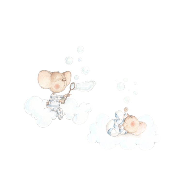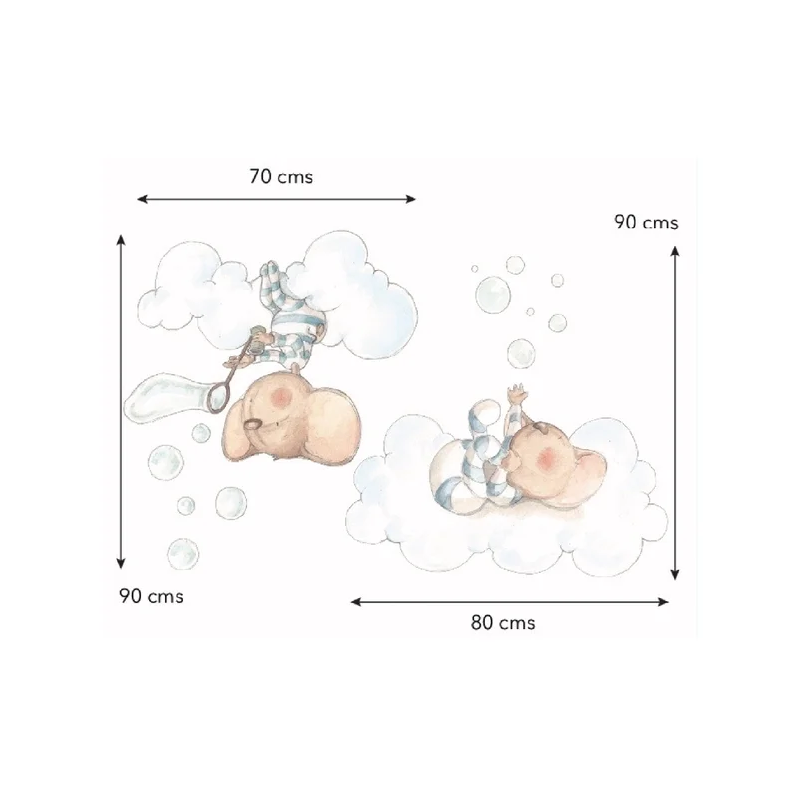Bonitos y dulces vinilos infantiles que reproducen unos divertidos diseños de dibujos pintados a mano, temática Mis Pompitas de Jabón