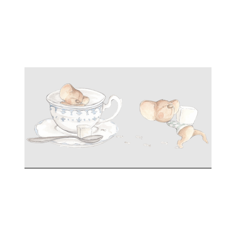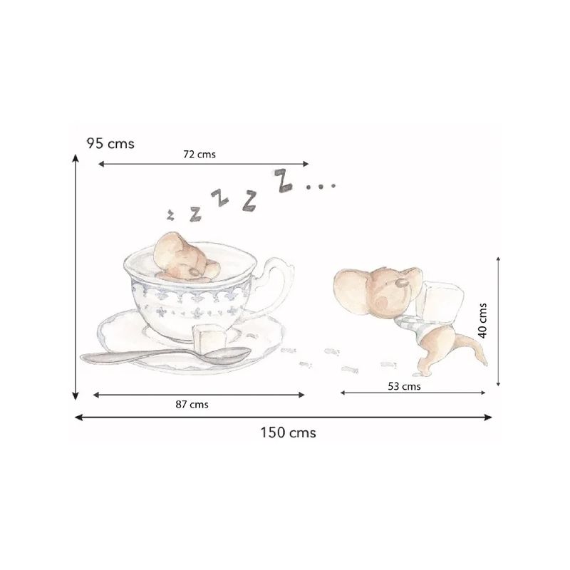 Bonitos y dulces vinilos infantiles que reproducen unos divertidos diseños de dibujos pintados a mano, temática Tacita de té