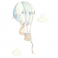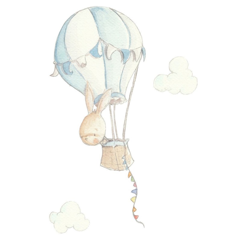 Bonitos y dulces vinilos infantiles que reproducen unos divertidos diseños de dibujos pintados a mano, temática Rabbit in Balloon