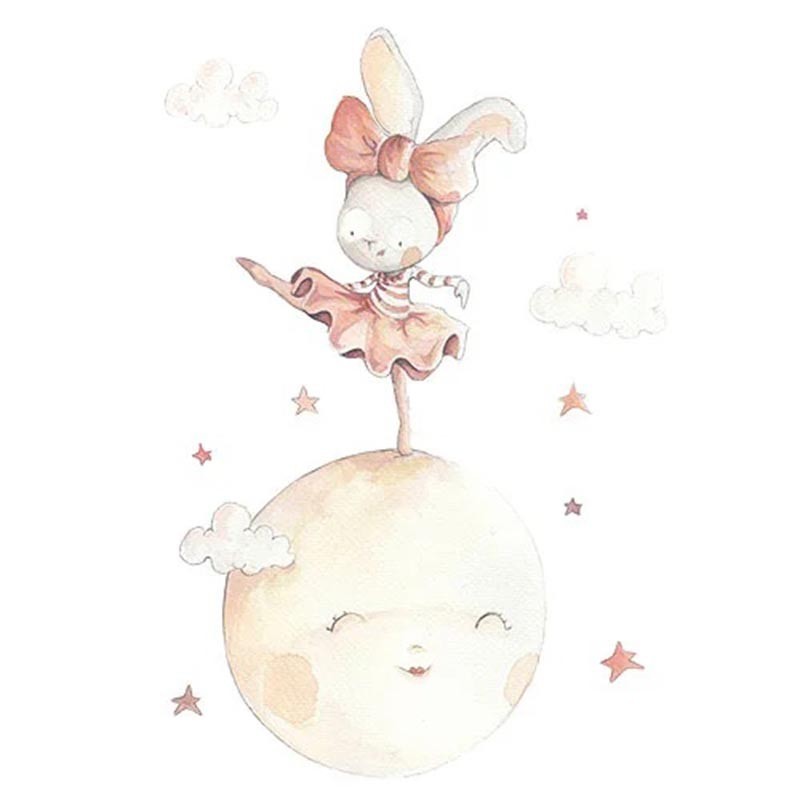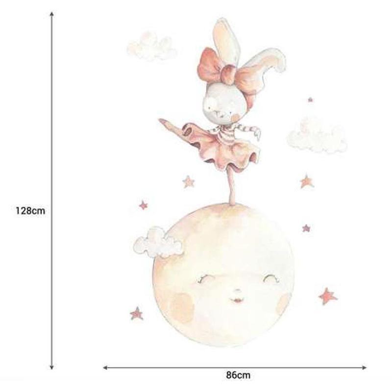 Bonitos y dulces vinilos infantiles que reproducen unos divertidos diseños de dibujos pintados a mano, temática Bailando en la Luna