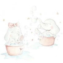 Bonitos y dulces vinilos infantiles que reproducen unos divertidos diseños de dibujos pintados a mano, temática Elefantitos al Baño