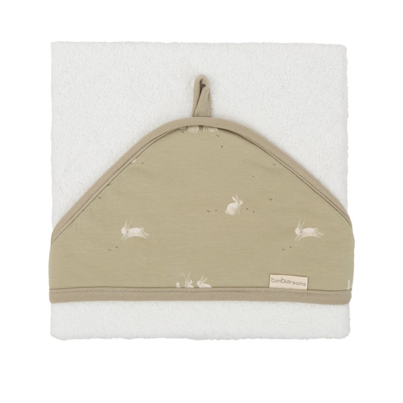 Maxi capa de banho macia da coleção Bunny da BimbiDreams para tornar agradável o momento relaxante do banho dos nossos pequenos.