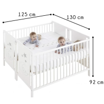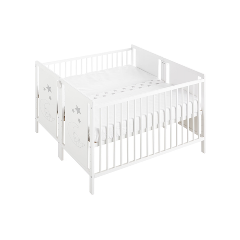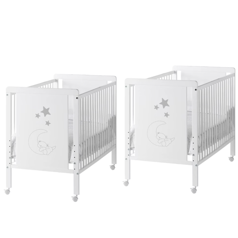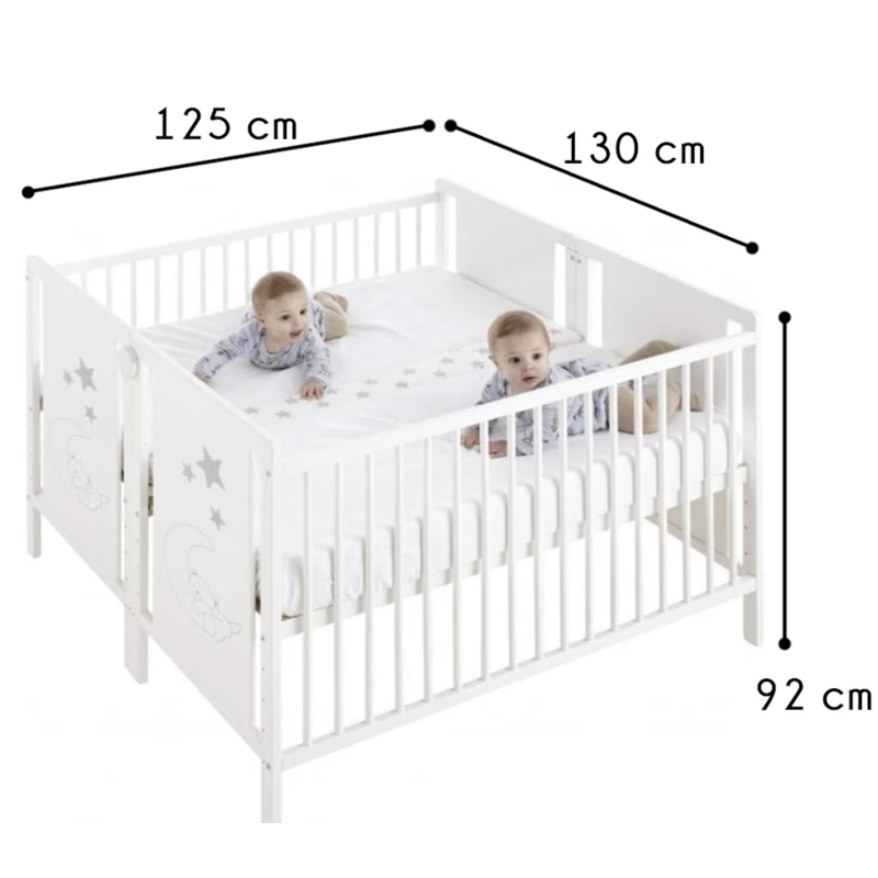 O Berço Indi Gemelar da Cool Dreams é a opção ideal para famílias com gémeos que procuram um berço amplo, seguro e prático para acompanhar os primeiros meses de vida. O seu design duplo, com dois espaços independentes numa única estrutura, permite que cada bebé tenha o seu próprio ambiente de descanso enquanto permanecem juntos, favorecendo a ligação entre irmãos e facilitando a vigilância dos pais.