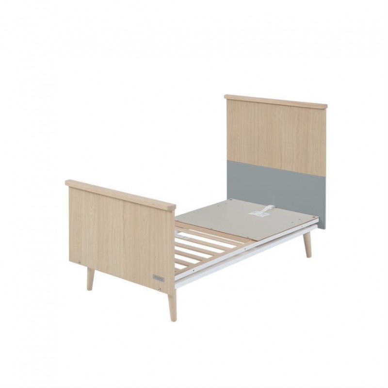 Berço conversível em uma cama de madeira de faia da mais alta qualidade, modelo NATUREZA de 70x140 cm, combinado em uma cor para escolher: Storm Grey ou White, estilo nórdico-escandinavo da empresa de móveis infantil Micuna
