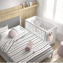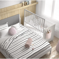 - União de espuma estofada em tecido jersey macio para poder colocá-la no espaço entre o berço e a cama dos pais