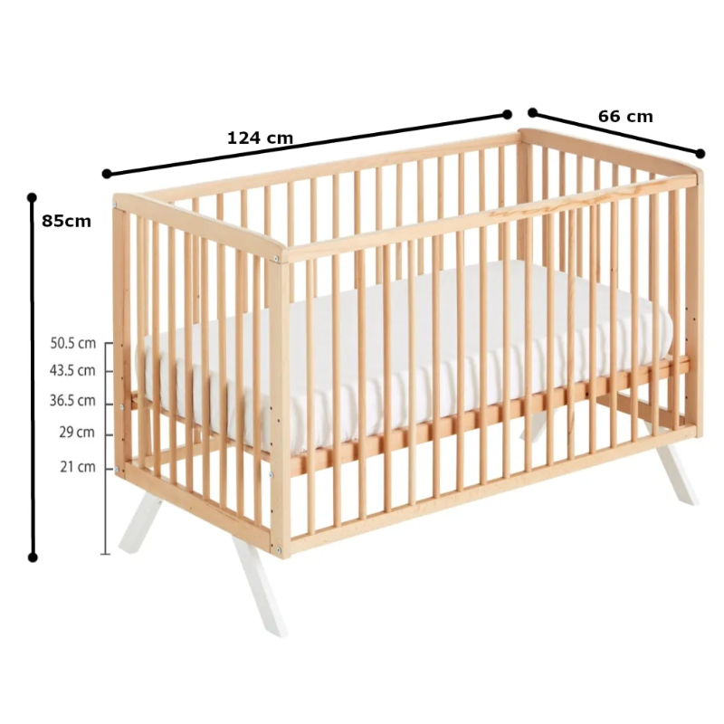 - Base da cama ajustável em 5 alturas (21,5 - 29 - 36,5 - 43,5 - 51 cm)