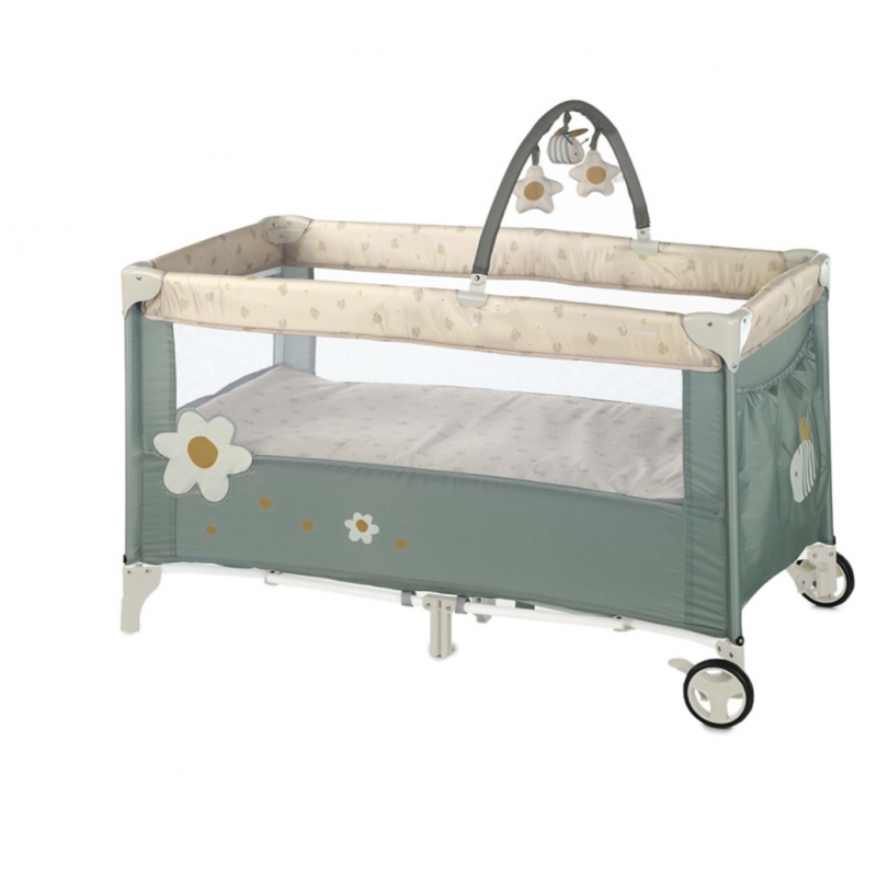 Berço de viagem Jané Duo Level Toys que incorpora a possibilidade de alterar o nível do colchão para 2 alturas diferentes.