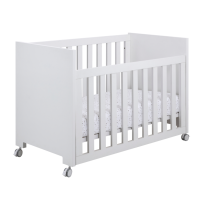 A lateral móvel facilita o dia a dia, especialmente durante os primeiros meses, e as quatro rodas com travão permitem mover o berço facilmente entre os cômodos, mantendo sempre a estabilidade e a segurança.