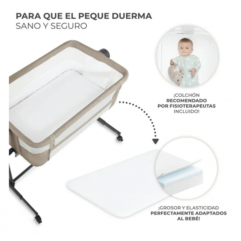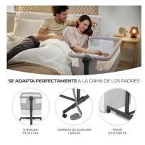 O berço co-leito facilita a amamentação noturna sem a necessidade de se levantar. É universal: graças aos ajustes, fixa-se facilmente na cama dos pais.
