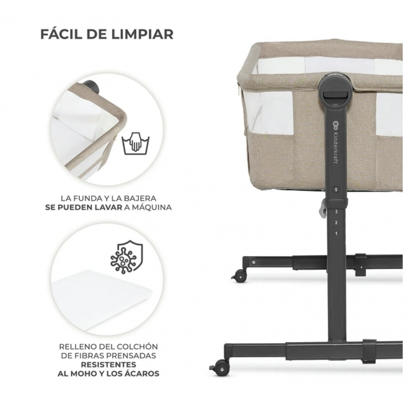 O berço de co-leito NESTE UP da Kinderkraft é funcional, graças a isso a mãe terá sempre o seu bebé por perto.