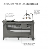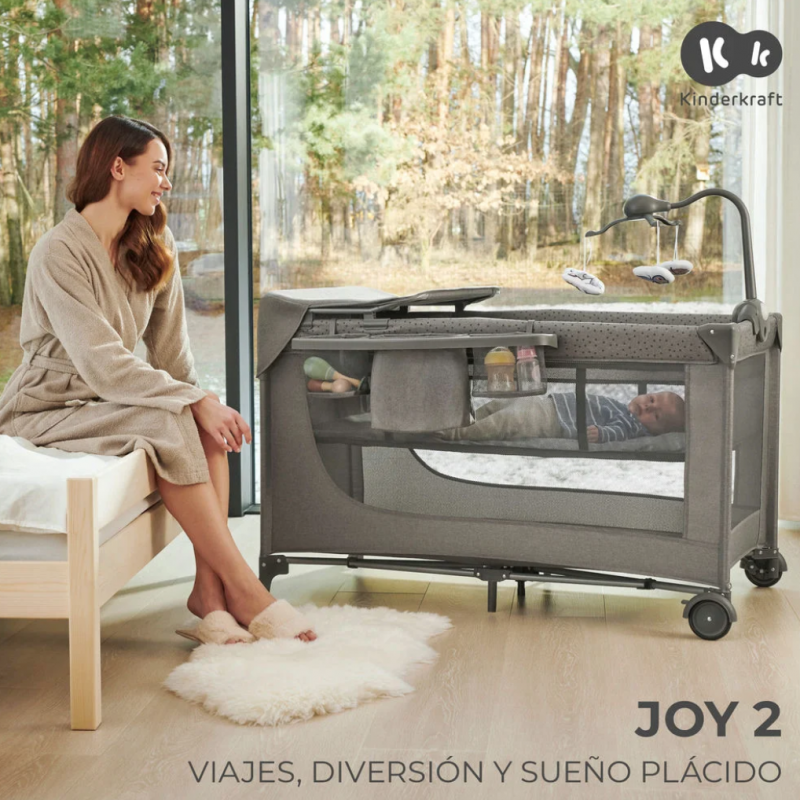 O carrossel com sons, luzes e 3 bichinhos de pelúcia permitirá ao bebê treinar sua atenção e concentração, além de incentivá-lo a esticar os braços. Além disso, você achará os cochilos mais relaxantes. Para as famílias, há um trocador e um organizador lateral muito úteis. Isso tornará a troca de fraldas ainda mais fácil. Com o JOY 2, você terá tudo na ponta dos dedos.