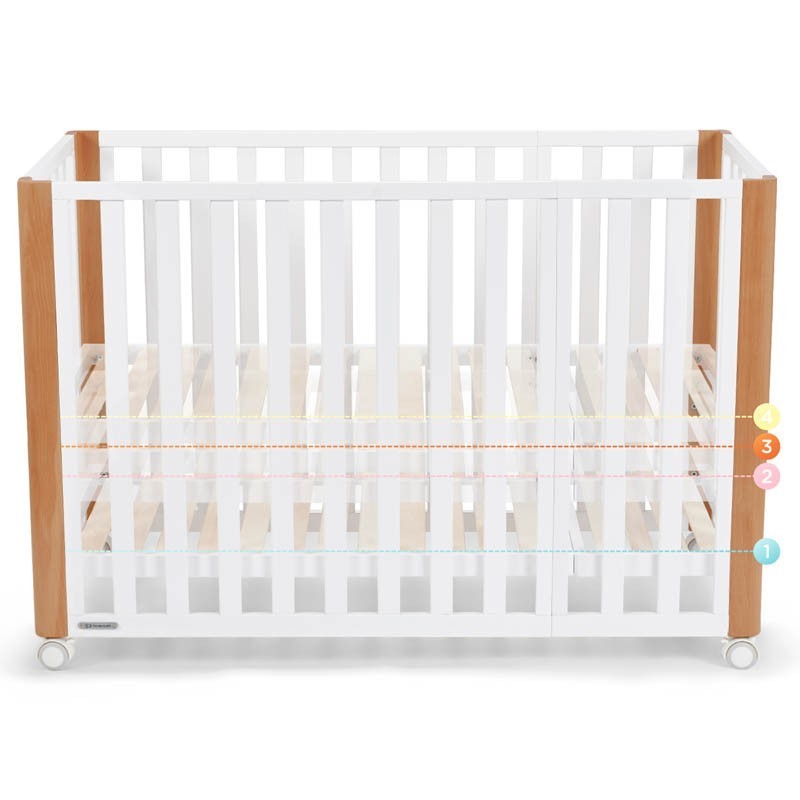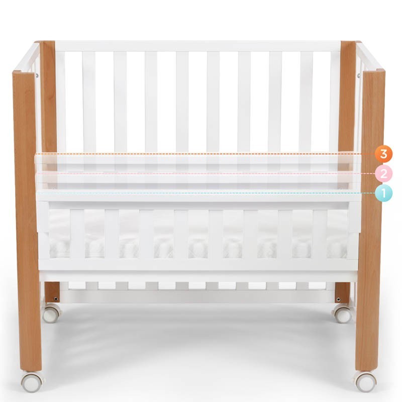 A parte inferior do berço co-leito pode ser ajustada em 3 alturas. Graças a isso, você ajustará facilmente KOYA à altura de sua cama.