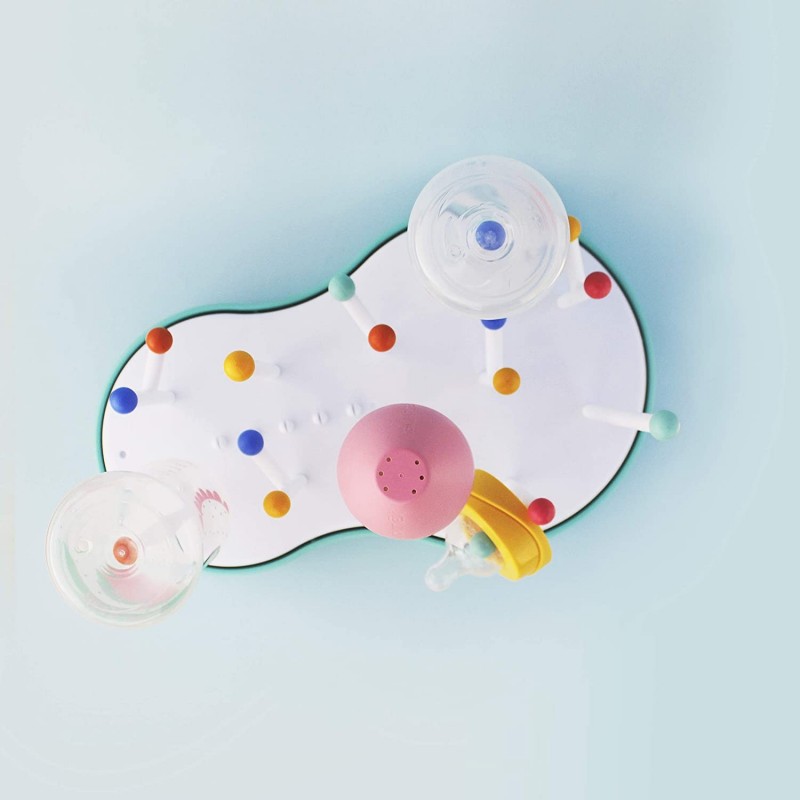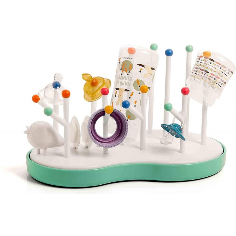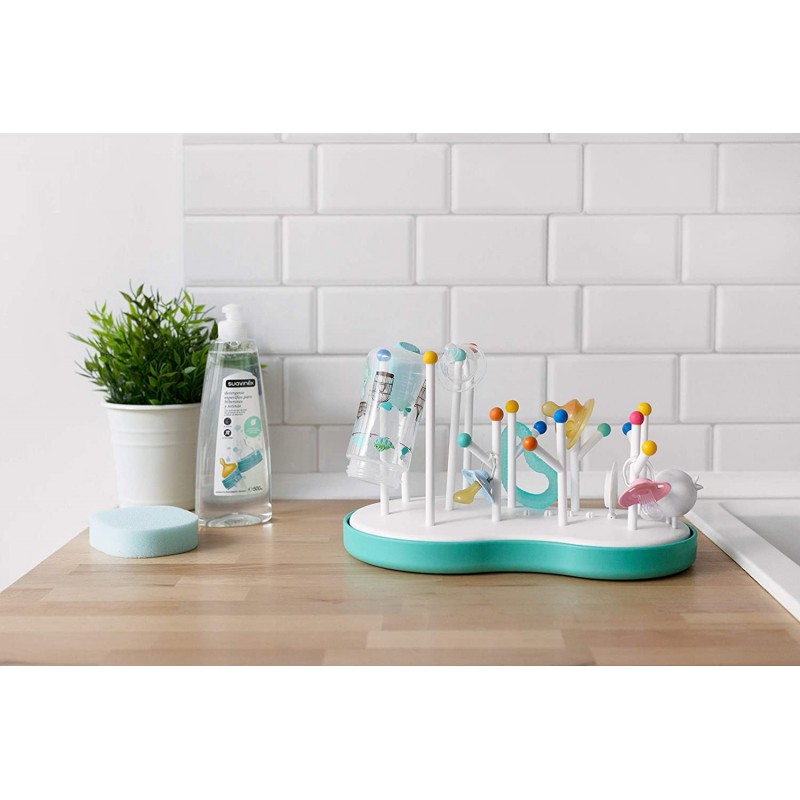 O escorredor de mamadeiras Suavinex é um complemento prático com o qual podemos deixar drenar mamadeiras, chupetas e bicos de maneira organizada após a lavagem.