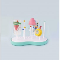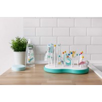 Possui bastões longos para as mamadeiras e bastões curtos para as chupetas e bicos, desta forma eles seguram sem cair e escoam a água corretamente evitando estagnação.