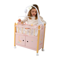 Os mais pequenos passarão horas a brincar com este elegante berço/guarda-roupa de madeira.