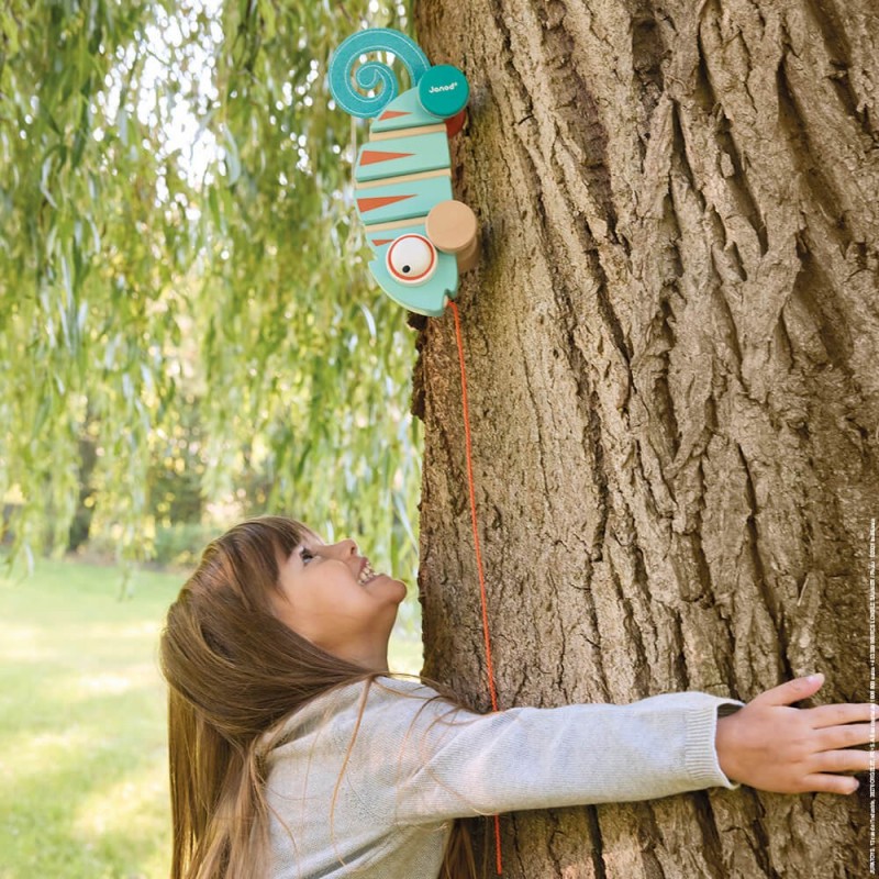 Este camaleão engraçado balança quando se move, então nossos pequenos vão adorar usá-lo em suas caminhadas.