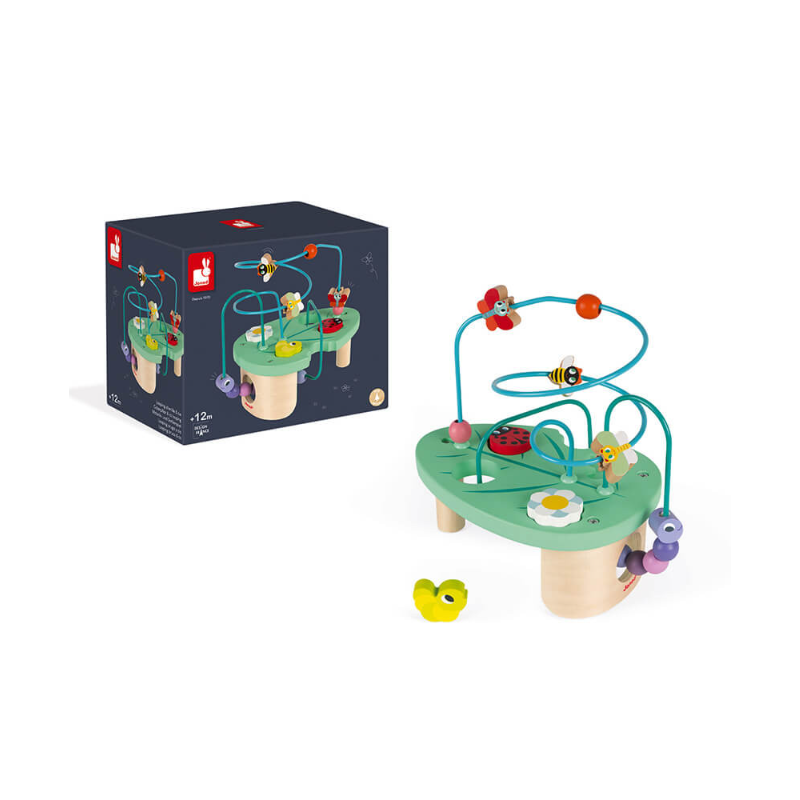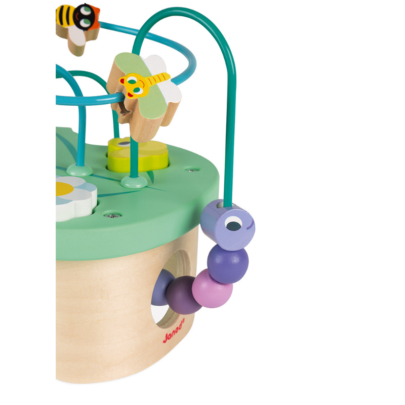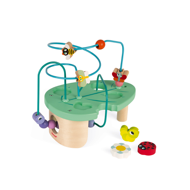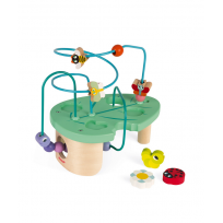 Linda e divertida mesa de atividades em madeira que contém diferentes elementos para manipular que farão as delícias dos nossos mais pequenos nanites.