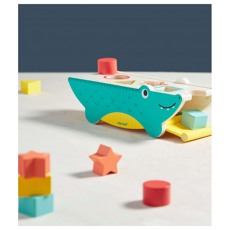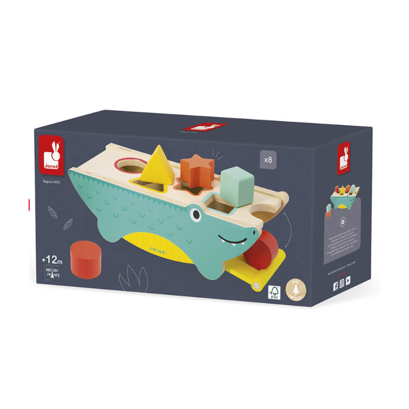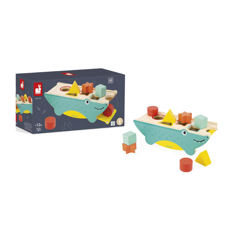 Este crocodilo tem 8 peças diferentes que os nossos pequeninos terão de encaixar, desenvolvendo assim a motricidade e trabalhando na aprendizagem das formas.