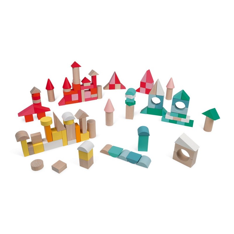 Conjunto de 120 cubos de madeira pintados com água para os mais pequenos se divertirem construindo o mundo das cores.